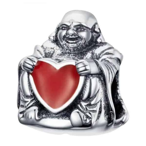 Bedel Boeddha | Zittende Boeddha met rood hart | 925 Sterling Zilver