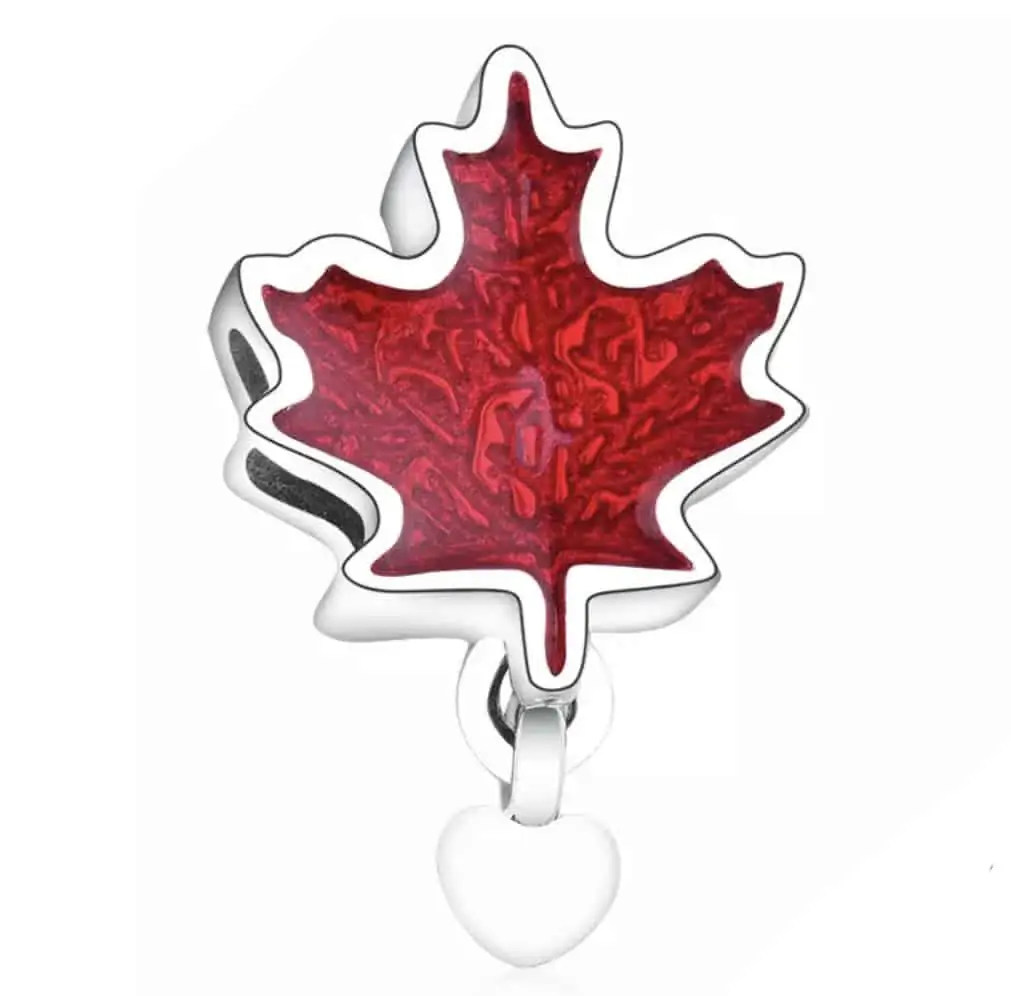 Bedel Maple Leaf met hartje | Canada bedel met emaille | 925 Sterling Zilver
