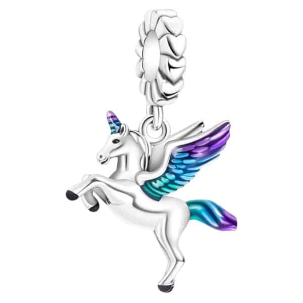 Zilveren bedel eenhoorn met 925 certificaat. Geschikt voor Pandora en schitterend bewerkt met hoogwaardig emaille. Dit prachtige bedeltje is een échte aanwinst voor je bedelarmband. Verzamel jouw favoriete bedels aan je armband met de zekerheid van een 925 zilver echtheidscertificaat. We verpakken elk sieraad in een aantrekkelijke geschenkverpakking. Én je hebt het voordeel van gratis verzending en retour in Nederland en België.