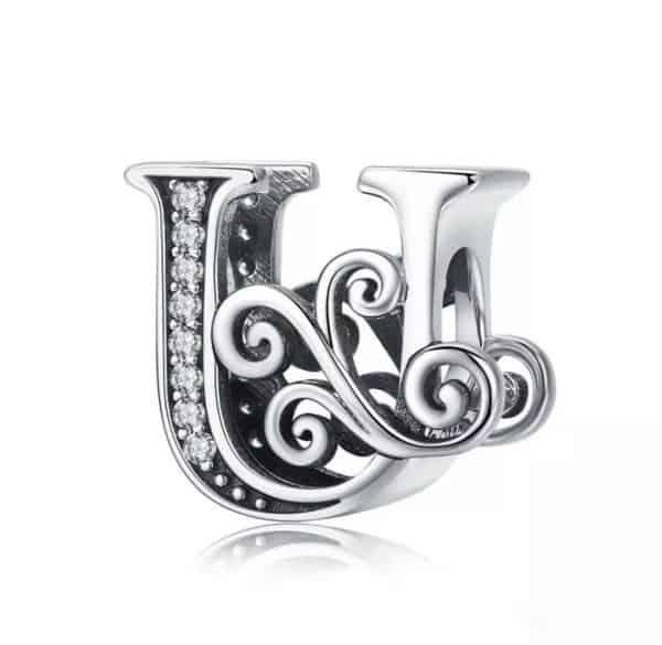 Zilveren bedel letter U met 925 certificaat. Pandora compatible en fraai bezet met zirkonia. Elke alfabet bedel is direct uit voorraad leverbaar. De mooiste zilveren letter bedels voor je initiaal armband shop je vertrouwd. Met de zekerheid van een 925 Zilver echtheidscertificaat. En feestelijk verpakt in een leuke cadeauverpakking. We presenteren wekelijks nieuwe bedels en sieraden. Combineer je letter bedels ook eens met een cijfer bedel. Of draag je alfabet bedel eens op een volledig nieuwe manier. Met onze verrassende ketting hanger beads kun je meerdere bedels aan je ketting dragen.