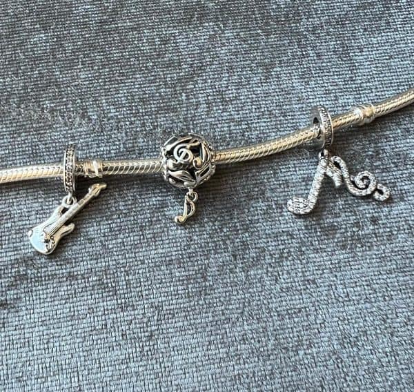 Het is natuurlijk leuk om je bedel muzieksleutel te matchen met andere sieraden. Het begint natuurlijk allemaal met een mooie zilveren bedelarmband. Maar kijk ook eens naar onze andere bedels met muziek als thema. Zoals deze prachtige hart bedel met muzieknoten en microfoon of dit leuke gitaar bedeltje.