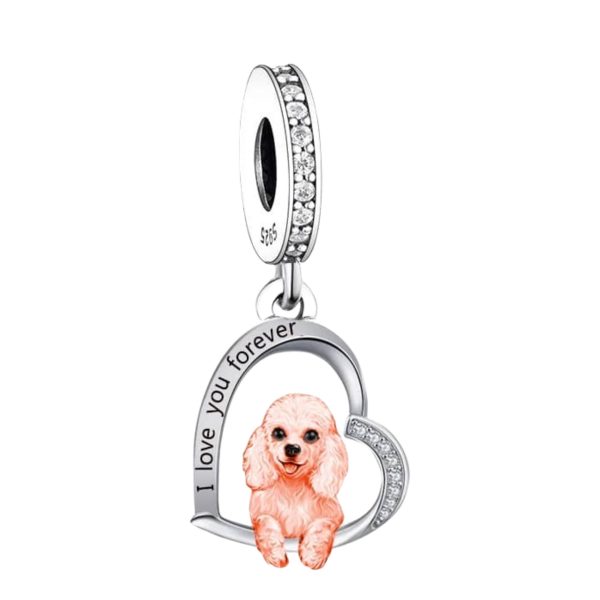 Zilveren bedel poedel met 925 certificaat. Pandora geschikt en chique uitgevoerd in 2 kleuren zilver. Lieve honden bedel poedel met de tekst ‘I love you forever’. Dus als jouw poedel je beste vriendje is, dan is dít jouw bedeltje. En als je bedel fan bent natuurlijk. Echt zilveren bedels honden en dieren bestel je vertrouwd online. Met de zekerheid van een 925 Zilver echtheidscertificaat en altijd feestelijk verpakt in leuke geschenkverpakking. Bovendien profiteer je van gratis verzending binnen Nederland en België.