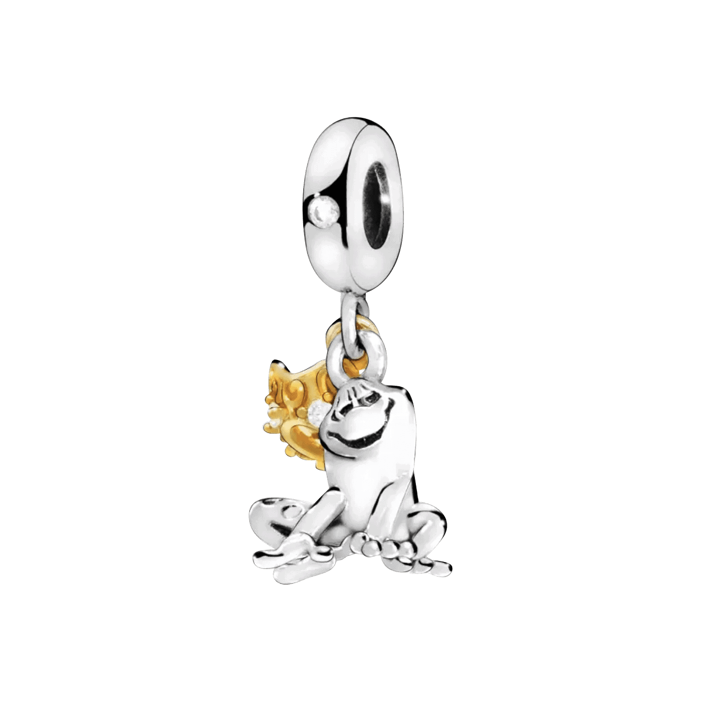 Het verschil zit in de manier van bevestigen aan je bedelarmband. Een bedel (of Bead) heeft een opening in het centrum. De armband gaat dus direct door de bedel heen. Een Charm (ook wel Dangle Charm) heeft een oog. Het sieraad hangt dus aan het oogje aan je armband. Deze bedel prins kikker is dus een ‘charm’.