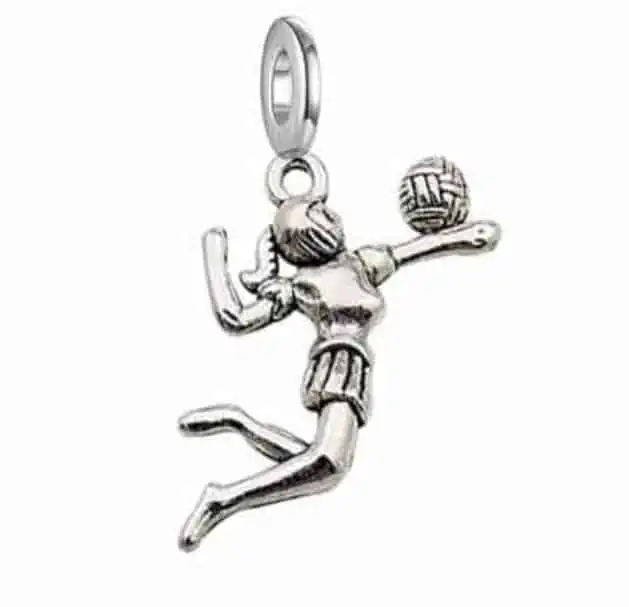 Het verschil is de manier van bevestigen aan je armband. Een bedel (of Bead) heeft een opening in het centrum. De armband gaat rechtstreeks door de bedel heen. Een Charm (ook Hanger of Dangle Charm) heeft een oog. Het sieraad hangt dus aan het oogje aan je bedelarmband. Deze bedel volleybalster is dus een ‘charm’.