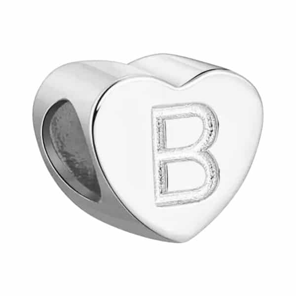 Zilveren hart bedel letter B met 925 certificaat. Pandora compatible en gemaakt van eerste kwaliteit massief zilver. Creëer je unieke initialen armband en draag de voorletters die belangrijk voor je zijn. Met initiaal bedels maak jij je armbandje nóg persoonlijker. Echt zilveren initiaal bedels en charms shop je vertrouwd met de zekerheid van een echtheidscertificaat. En altijd leuk verpakt in geschenkverpakking. Verzending en retour zijn gratis binnen Nederland en België.