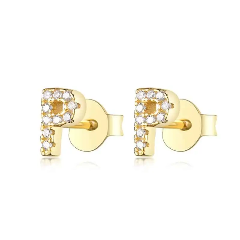 Letter oorbellen P in goudkleurig massief zilver mét 925 certificaat. Mooie oorbel initiaal bezet met glinsterende zirkonia. Geniet van de bewonderende blikken. Deze studs zijn gemaakt van massief 925 Sterling Zilver. Nieuwe zilveren oorbellen zorgen voor een feestje in en aan jouw oren. Je shopt oorbelletjes zilver betrouwbaar én betaalbaar. Wij leveren onze sieraden inclusief 925 Zilver echtheidscertificaat. Jij hebt daardoor maximale zekerheid dat jouw zilveren oorbelletjes echt waardevol zijn. We presenteren elke week nieuwe sieraden. Combineer je letter oorbellen ook eens met een letter ketting of een letter bedel. Zo creëer je opvallende combinaties. Je profiteert van gratis verzending en retour. En jouw nieuwe oorbellen worden bovendien altijd verpakt in leuke cadeauverpakking.