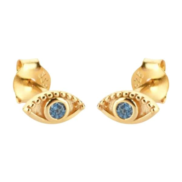 Zilveren boze oog studs met 925 certificaat. Mystieke oorbellen boze oog studs in goudkleurig zilver. Bescherm je geluk en gezondheid en creëer jouw eigen ‘earparty’. Nieuwe zilveren oorbellen zorgen voor een feestje in en aan jouw oren. Je shopt zilveren oorbellen betaalbaar én betrouwbaar. Altijd geleverd met een 925 Zilver echtheidscertificaat. Jij hebt dus maximale zekerheid over jouw aankoop. We presenteren elke week nieuwe oorbellen en sieraden in onze collectie. Je hebt het voordeel van gratis verzending en gratis retour. En we verpakken jouw sieraad altijd in een leuke cadeauverpakking.