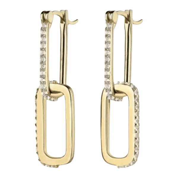 Zilveren statement oorbellen dubbele hanger met 925 certificaat. Eyecatcher oorbellen met dubbele rechthoeken vol zirkonia voor een bling effect. Passen ze bij jóuw stijl? Deze goudkleurig zilveren oorbellen zorgen voor een feestje aan je oren. Shop je echt zilveren oorsieraden vertrouwd. Altijd geleverd met een 925 Zilver echtheidscertificaat. Daardoor heb jij maximale zekerheid over jouw aankoop. Elke week presenteren we nieuwe sieraden en oorbellen. Hierdoor shop je altijd volgens de laatste trends. Je hebt het voordeel van gratis verzending en gratis retour. Mooie oorbellen zijn natuurlijk een geweldig cadeau. Daarom wordt jouw bestelling verpakt in een feestelijke cadeauverpakking.