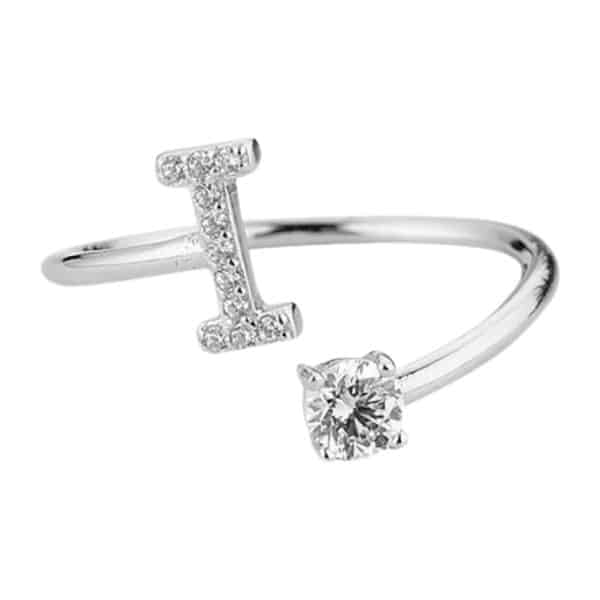Sprankelende ring met letter I.