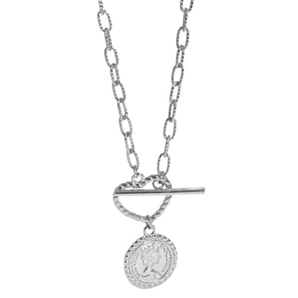 Zilveren ketting vintage munt met 925 certificaat. Inclusief zilveren ketting van 40 cm met bijzondere hart sluiting. Deze prachtige vintage ketting van een Engels pond uit 1901 toont Elizabeth II. Alsof je terug gaat naar vroeger tijden of per ongeluk een oude gouden munt vindt. We leveren de hanger inclusief zilveren ketting, beide in massief zilver. Je sluit de ketting door de stoksluiting door het hartje te stekken. De hanger heeft een doorsnede van 17 mm. We hebben deze mooie ketting ook in een goudkleurig zilveren uitvoering. Je shopt de mooiste zilveren kettingen en hangers vertrouwd. Want elk sieraad wordt geleverd inclusief 925 Zilver echtheidscertificaat. Je profiteert altijd van gratis verzending en retour. En jouw bestelling wordt feestelijk verpakt in cadeau verpakking. Elke week presenteren we nieuwe zilveren kettingen. Kijk bijvoorbeeld eens naar de Faith & Hope ketting en de Balance ketting.